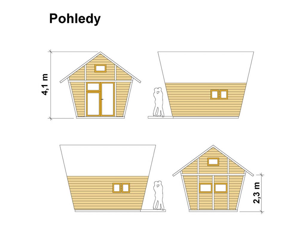 - Kompletní konstrukční výkresy - půdorys, řezy a pohledy, vše zpracováno pro svépomocnou výstavbu