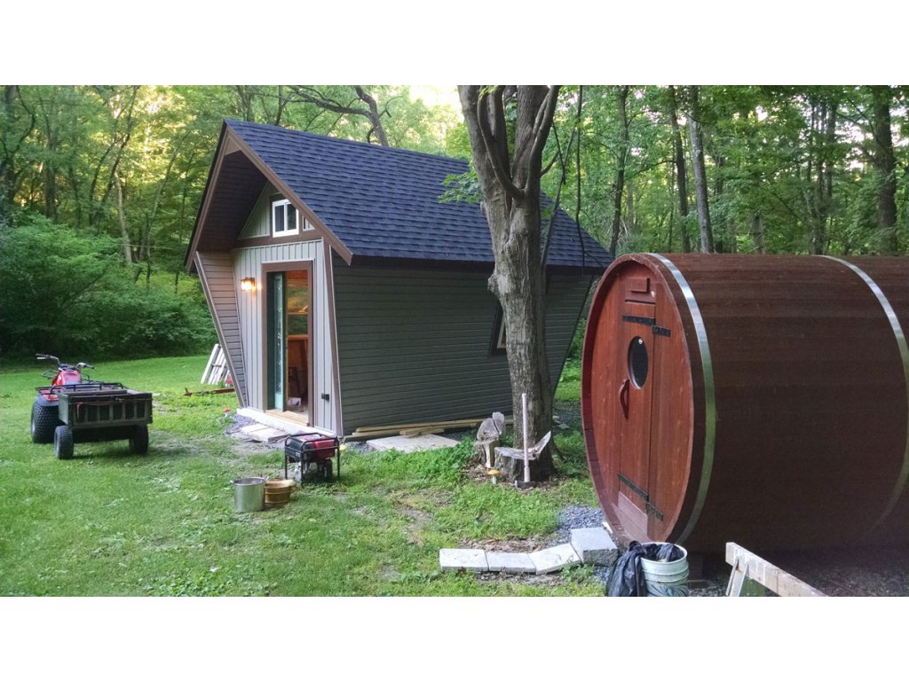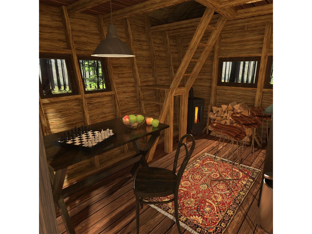 Chatka Anna s charakteristickým pětiúhelným průřezem disponuje pobytovou místností i spacím patrem.