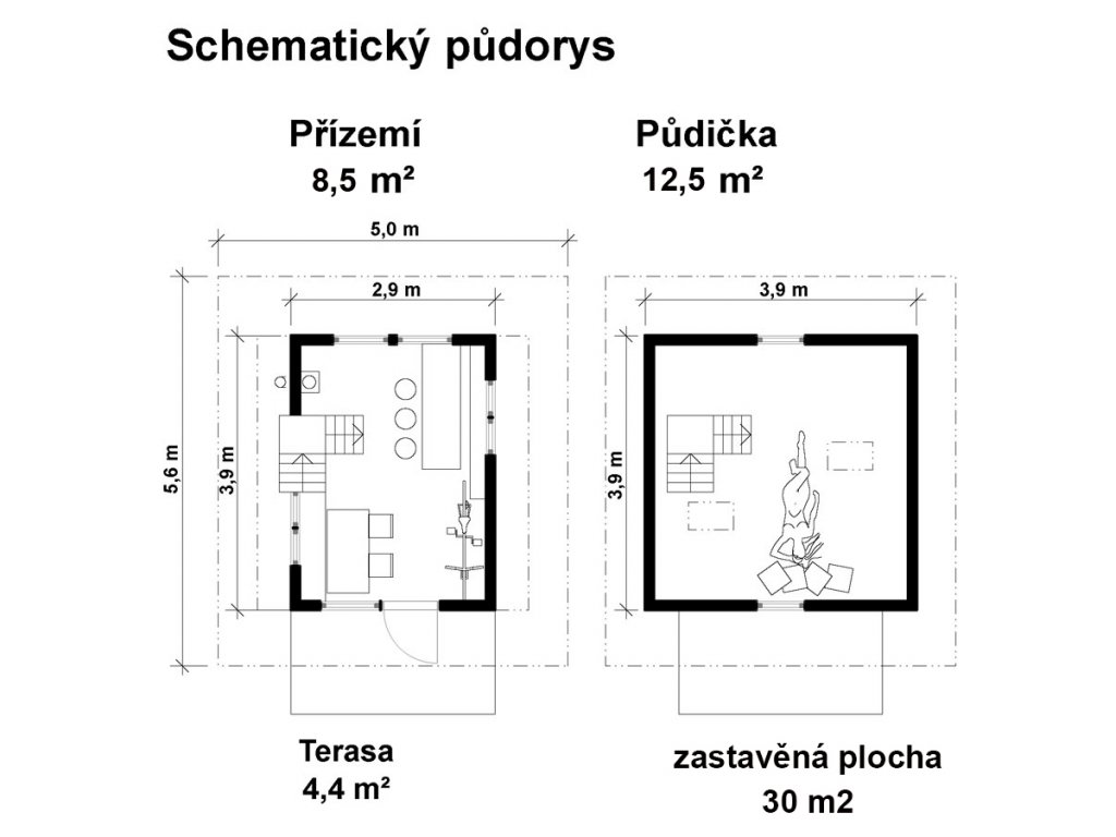 - Zastavěná plocha: 30 m2