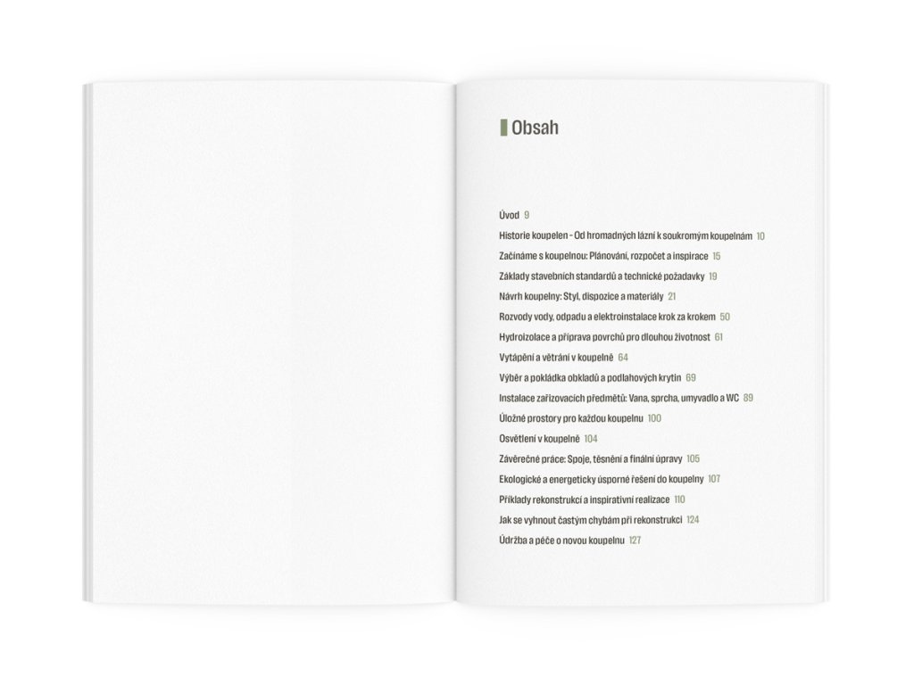 Kniha přehledně shrnuje základní stavební požadavky a technické zásady, které je třeba při stavbě koupelny dodržet. Věnuje se návrhu stylu, rozvržení dispozice, výběru materiálů, správnému provedení rozvodů, izolací, obkladů i instalaci zařizovacích předmětů. Zaměřuje se také na funkční řešení vytápění, větrání, úložných prostor a osvětlení. Nechybí ani kapitoly věnované ekologickým a energeticky úsporným možnostem. V závěru knihy najdete inspirativní ukázky realizací a praktické tipy, jak se vyhnout častým chybám a jak pečovat o novou koupelnu, aby vám dlouho sloužila.