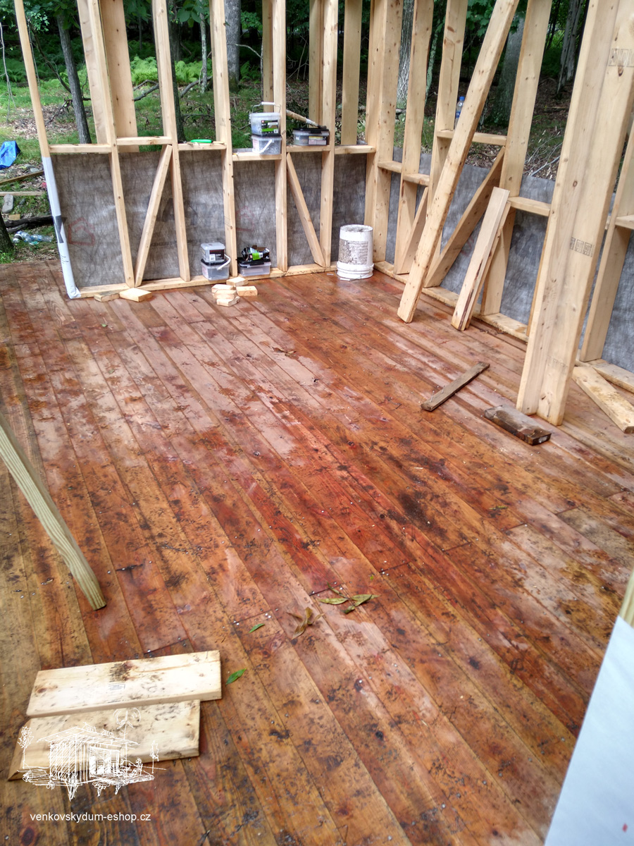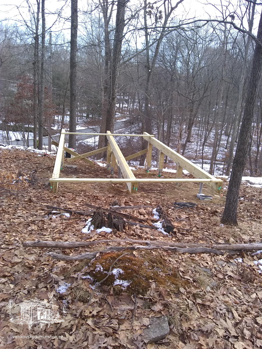 Založení této chatky může být různé a závisí především na tipu pozemku a Vašich materiálově konstrukčních preferencí. Na obrázcích je znázorněno řešení vhodné pro pozemky ve svahu. Nadmořská výška a povětrnostní podmínky lokality zase určují tloušťku tepelné izolace a tedy i stěn. Měli byste zájem o modifikaci tohoto projektu, neváhejte nás kontaktovat na info@venkovskydum.cz .