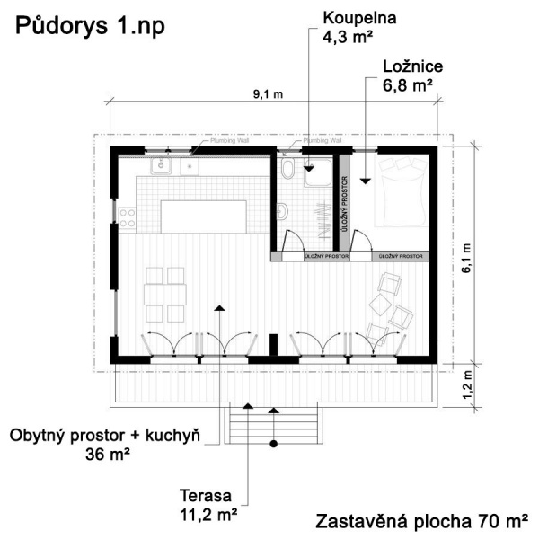 - Kompletní konstrukční výkresy - půdorys, řezy a pohledy, vše zpracováno pro svépomocnou výstavbu